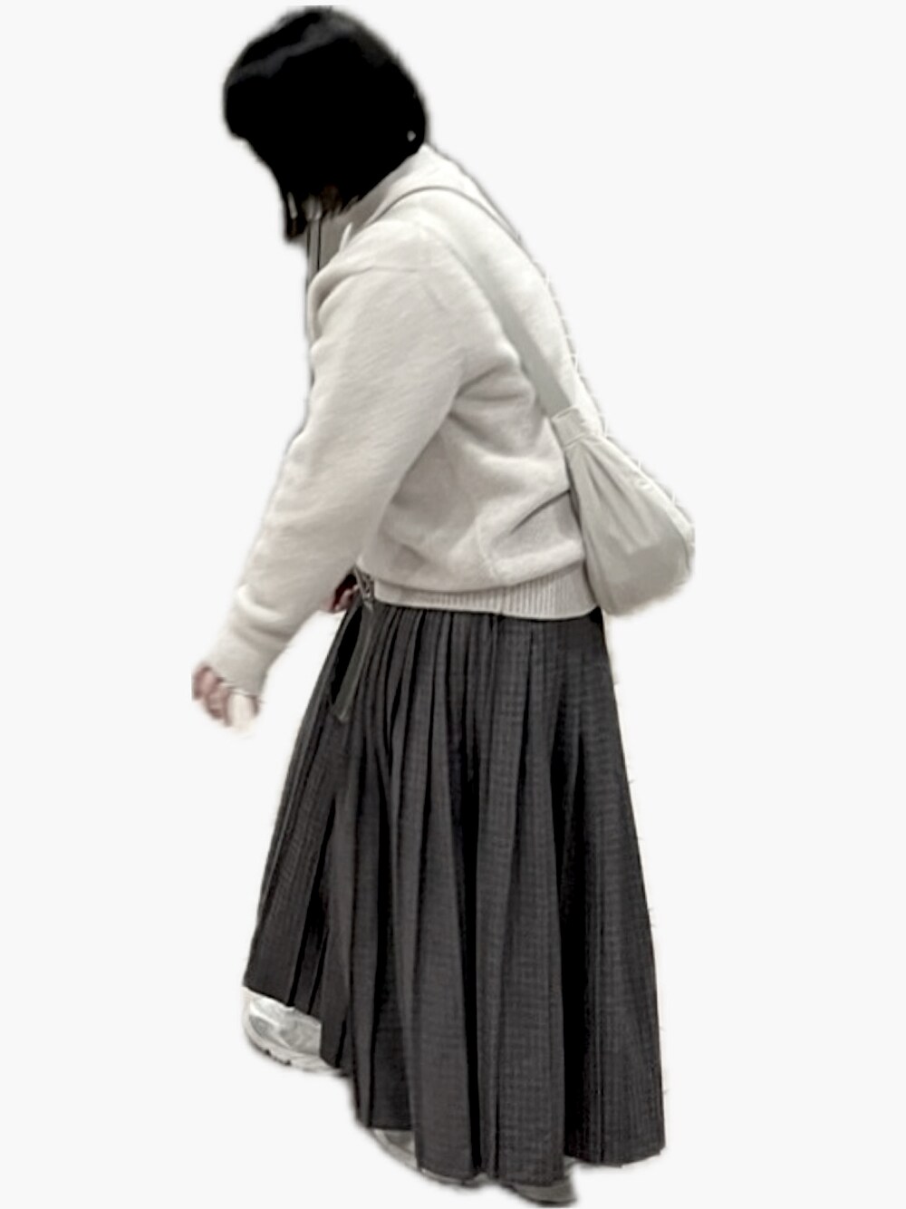 ニットの中にはUNIQLO白Tシャツも着ていました。 動きやすい格好にしたいけどスカートを履きたかった日なので、完全にあり合わせコーデです。