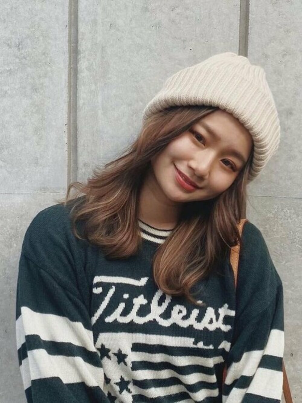 前からも横からも形が可愛い♡ オフホワイトは 私みたいなイエベの肌の人には 肌馴染みしやすい😌 ニットは父のを借りました🧶笑 . . #二重シンプルニットワッチ【WEB限定】 #ikni0134 #イチヨンプラス