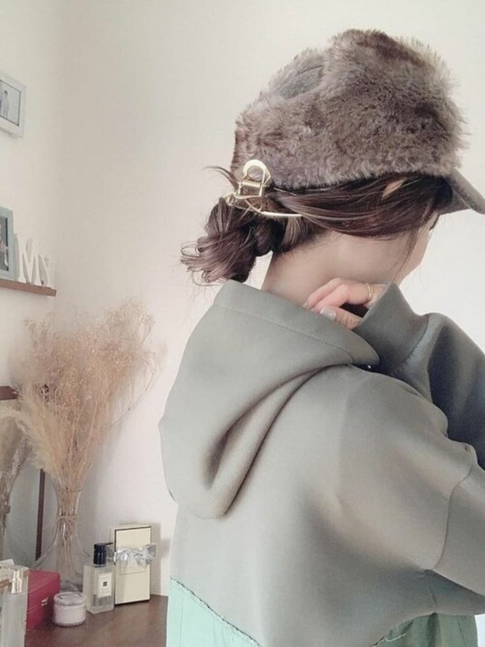 十四 鳩子のキャップ「フェイクファーフライトキャップ」を使ったコーディネート