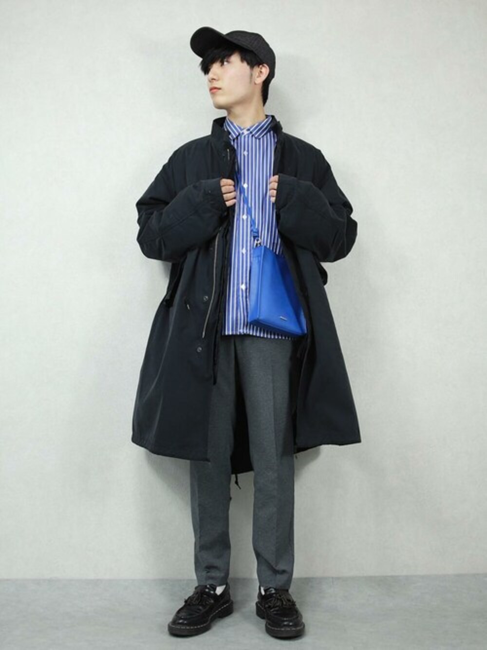 ブラック系のキャップを着用したメンズの春コーディネートの1枚目の写真