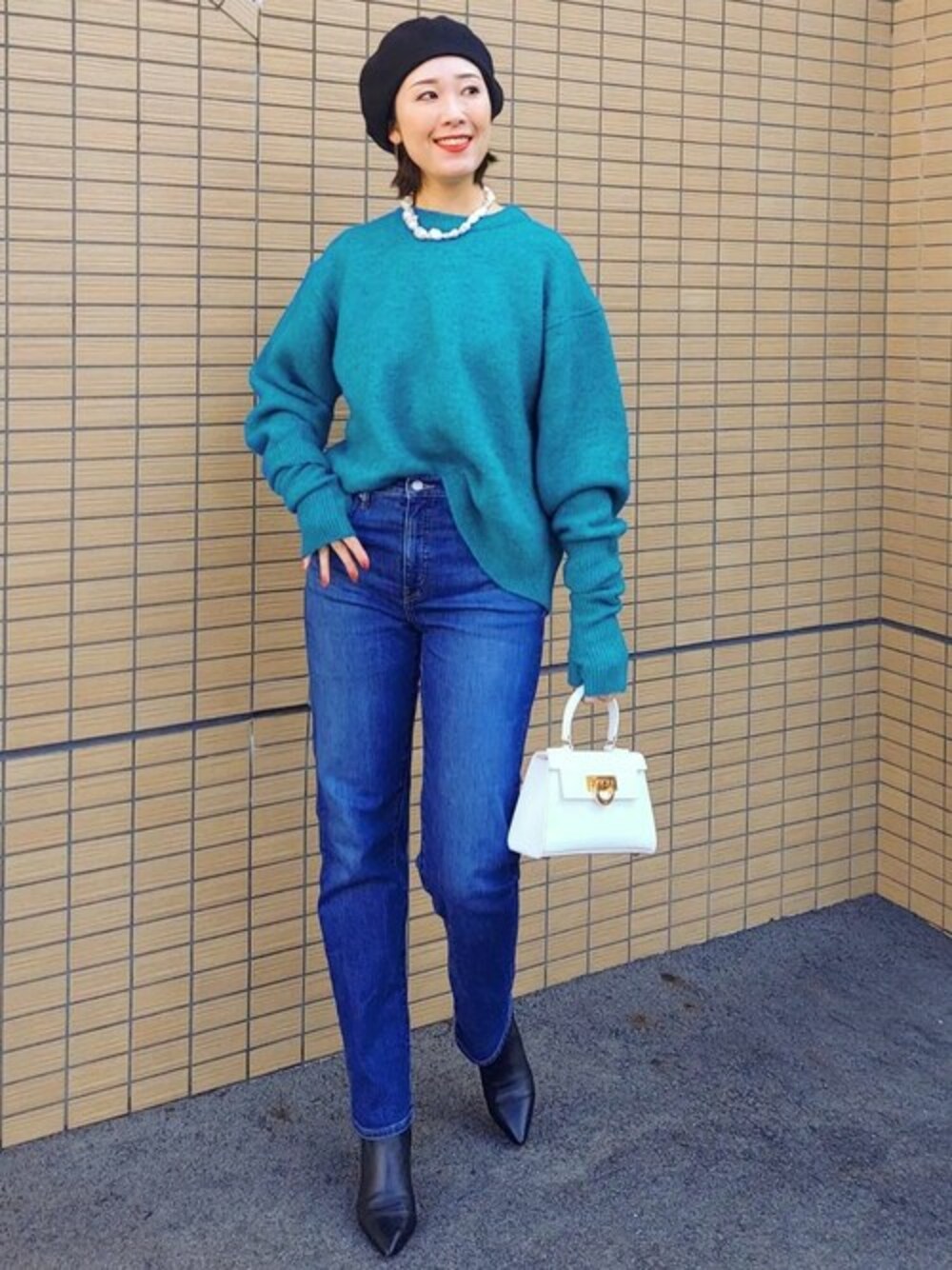十四 鳩子のハンチング/ベレー帽「シンプルニットベレー帽」を使ったコーディネート