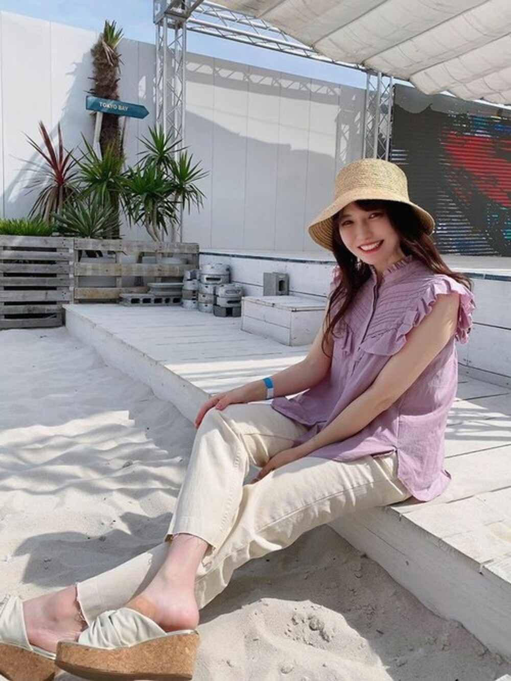 ラフィアブレードバケットハット 春夏のコーディネート