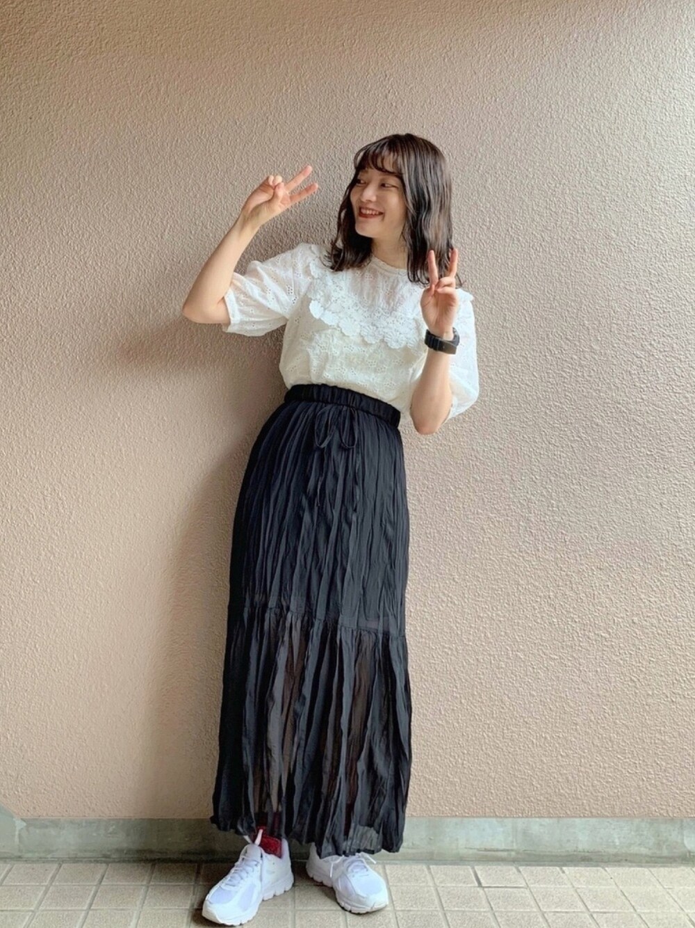 ®️inaのシャツ/ブラウス「スクエアレースカラーブラウス_」を使ったコーディネート