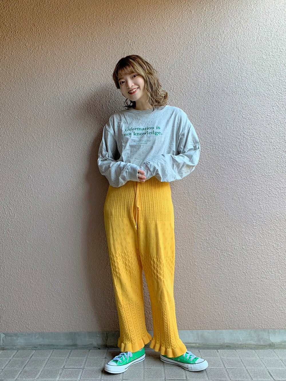 ご覧いただきありがとうございます😊 10月に入ってようやくロンT着れる季節〜🍁 けどカラーパンツは年中履いていたい😛 Instagram @rn__314