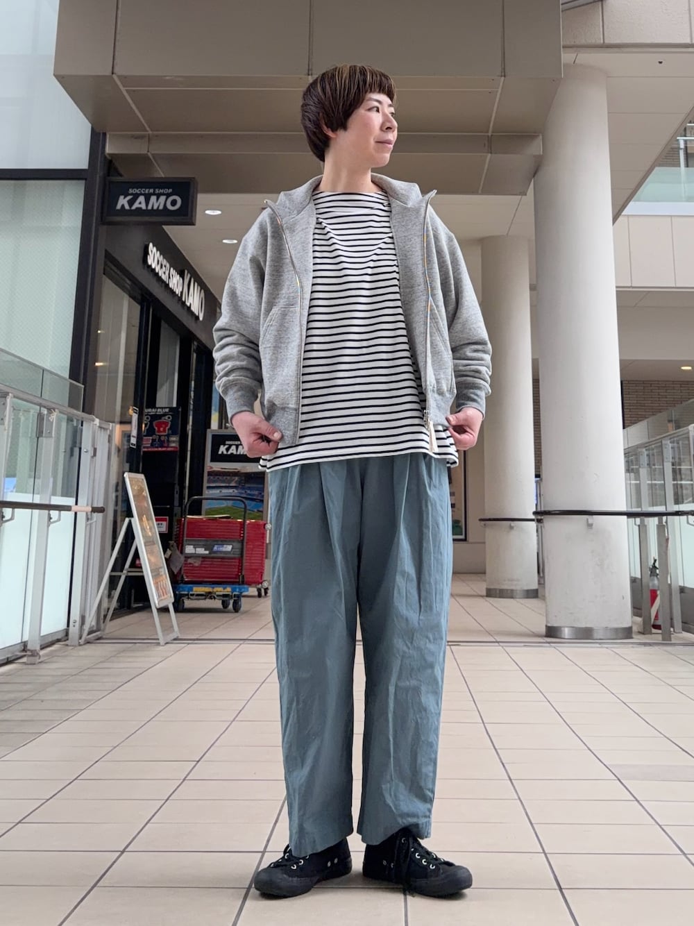 いわぶ(DOORS 丸亀町グリーン高松)のスウェット「コットンスウェットスタンドジップ」を使ったコーディネート