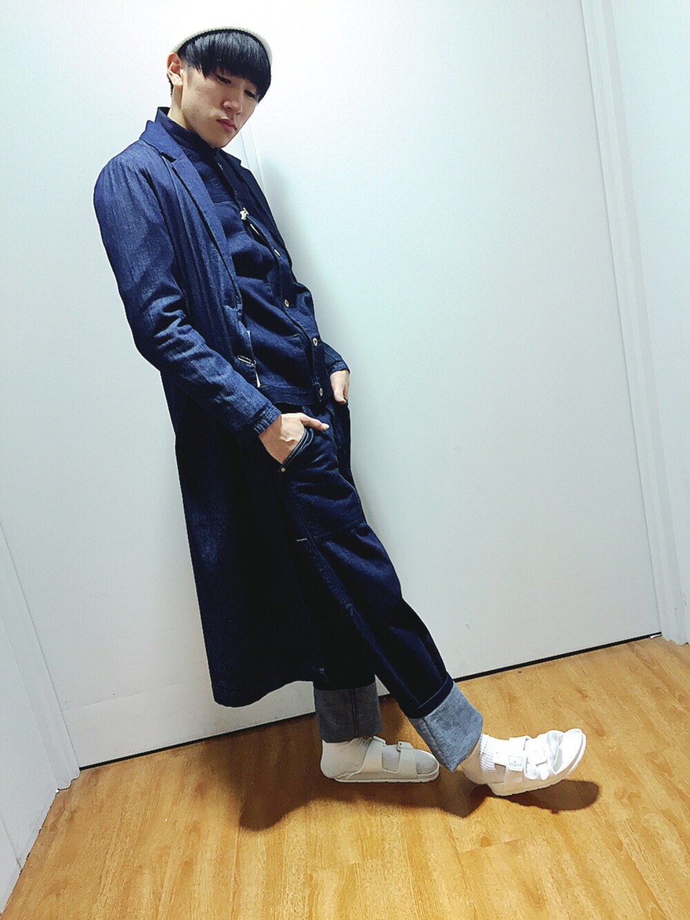 WORLDWORKERSのデニムonデニム。からのデニムコートでallデニムのコーデ。早くも先取りのサンダルで。春に向けて。差し色には白。