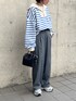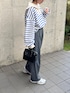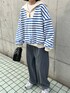 AKANEのスウェット「half zip border sweat po / ハーフジップボーダースウェットプルオーバー」を使ったコーディネート