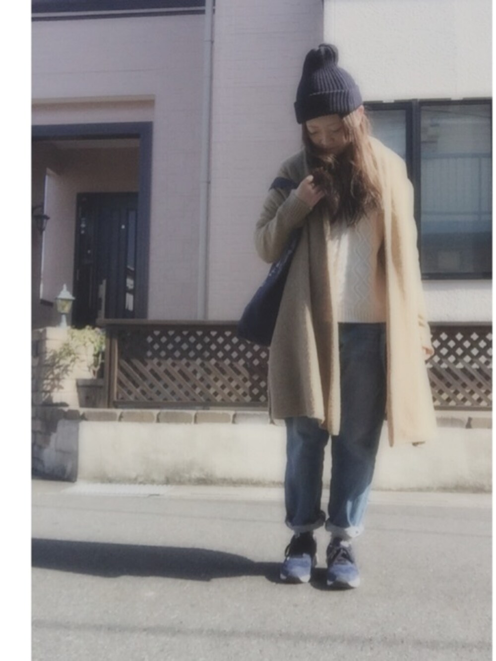 サス付きデニム ニットガウン トートバック スニーカー 最近こんな感じが増えてきました✳︎ 寒すぎて外で写真が撮れなかったわたし。 そろそろ撮れそうな気がしてますww
