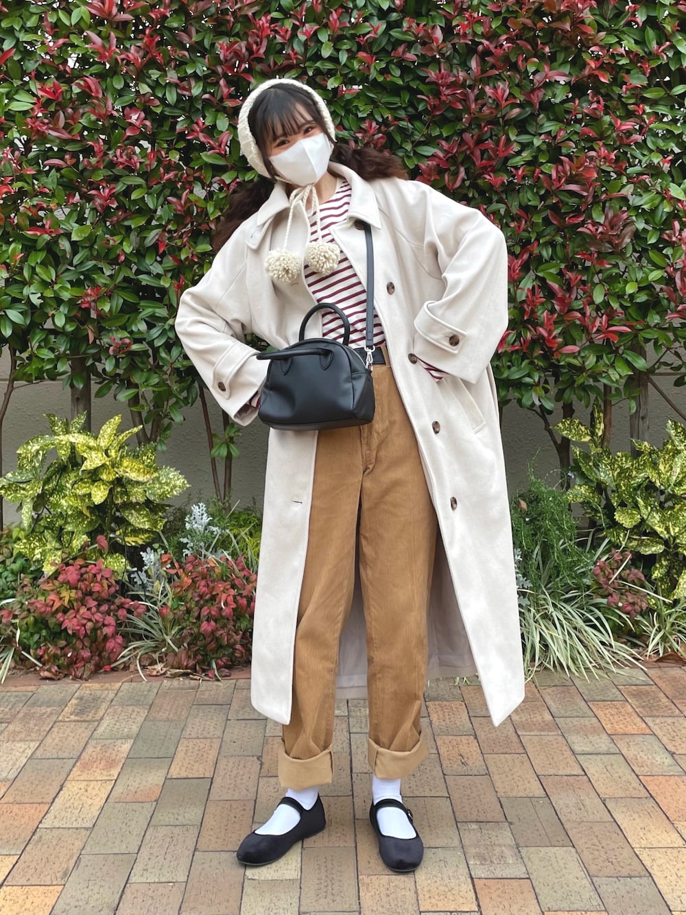 冬のカジュアルコーデ☃🧶 イヤーマフとコートを白で合わせて冬らしく◎ この色の組み合わせがお気に入り🤭