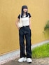 tomoka︎︎︎︎︎☺︎のTシャツ/カットソー「ソフトタッチロゴ刺繍ラグラントップス」を使ったコーディネート