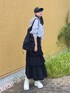 パーカーを取り入れた秋先取りコーデ🍁🎧 キャップやリュックのスポーツアイテムに ティアードスカートを合わせてミックスコーデ🤞🏻