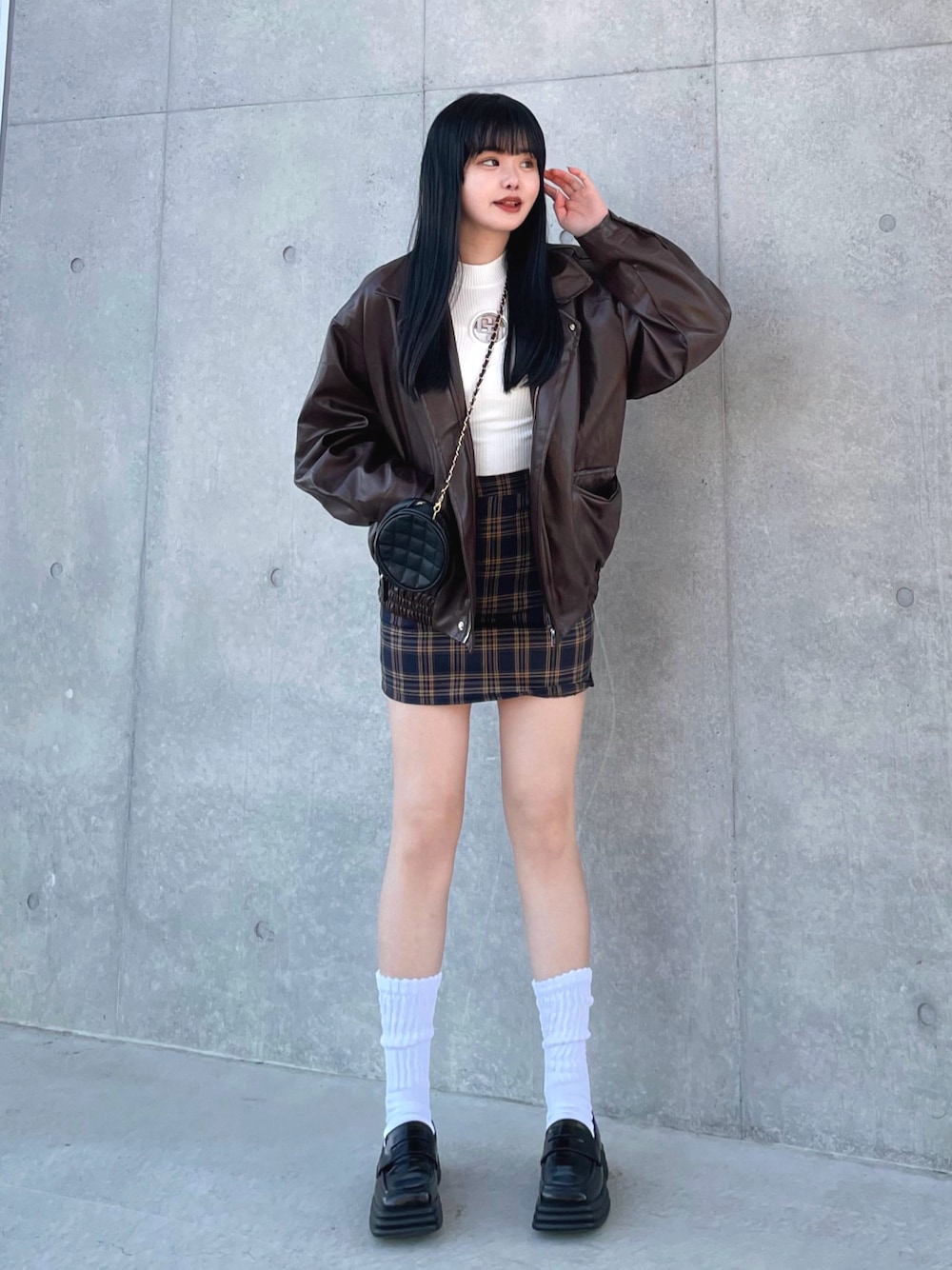 レザージャケット着回しコーデ🧥🤎 今回はミニスカートと合わせてかわいく🫶🏻
