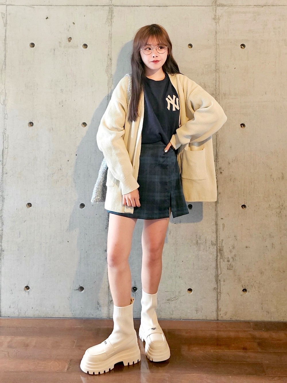 tomoka︎︎︎︎︎☺︎のカーディガン/ボレロ「畦編みVネックBIGカーディガン」を使ったコーディネート