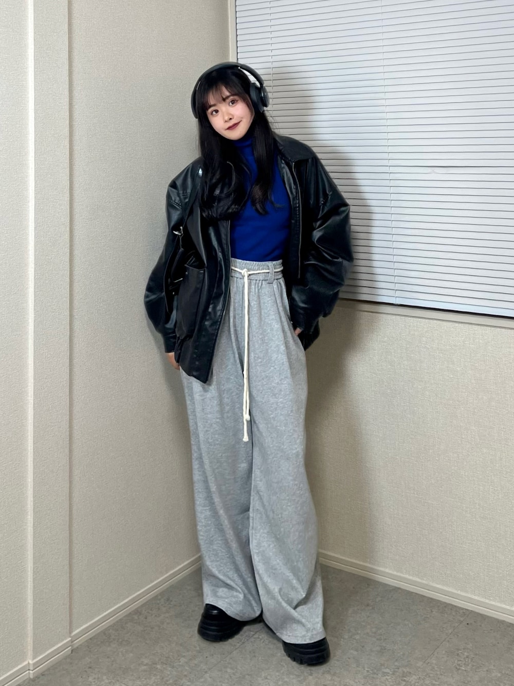 モノトーンコーデに差し色のブルーがかわいい🫶🏻 少し長めのパンツなので厚底ブーツをセレクト◎ 大好評いただきブーツの在庫僅かになっています! ぜひお早めにお手に取ってください🥹🤲🏻