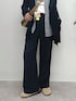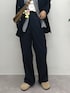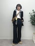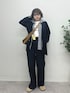 紺ブレとスラックスを同色で合わせたセットアップ風コーデ☁️🫐 チェックシャツとロゴTでカッチリしすぎないようにしました👌🏻