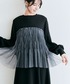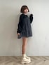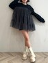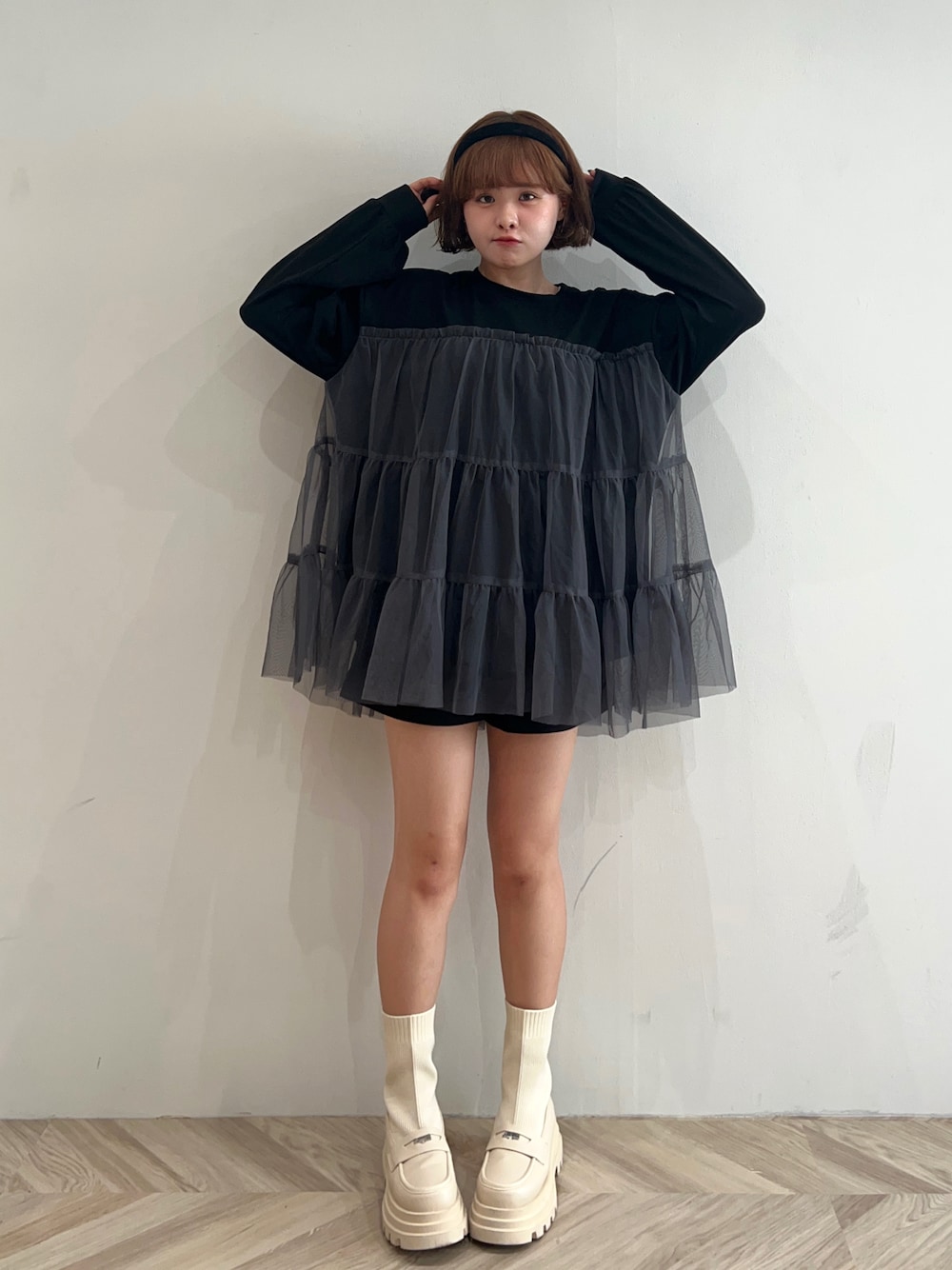 チュールがドッキングされたトレーナーをワンピ風に 1枚で着てみた🫶🏻💞 足元にベージュのショートブーツを合わせてガーリーに🤍
