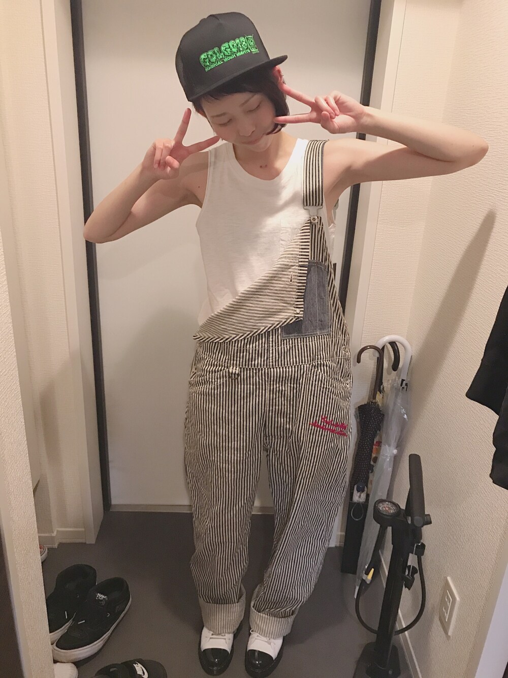 . EVILACTのヒッコリーオーバーオール 足元はDr.Martensで