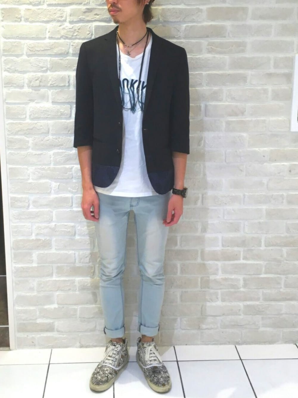 今回は七分袖のジャケットにしました‼︎ 普段、営業では袖をまくって営業をする事が 多いのですが今日はまくりません‼︎ 今の時期はダークトーンを着ることが多いので 気分を変えてライトブルーのパンツに ホワイトのインナーに柄物のスニーカーを履き 結局ダークトーンのジャケをはおるw 今日は髪を結ぶのでメガネをかけます( ´ ▽ ` )ノ