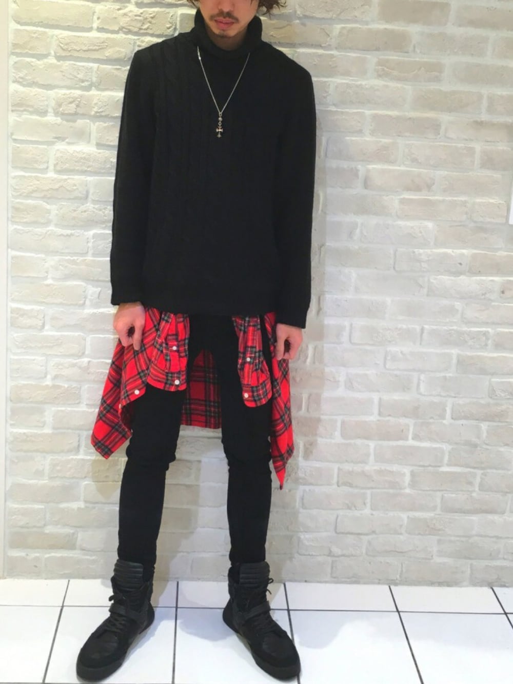 今回はブラックメインからの赤チェックシャツの 腰巻きスタイルです‼︎ オールブラックも好きなのですが、最近は どこかに色を持ってきたい気分みたいですな‼︎ 今日の営業スタイルでした( ´ ▽ ` )ノ