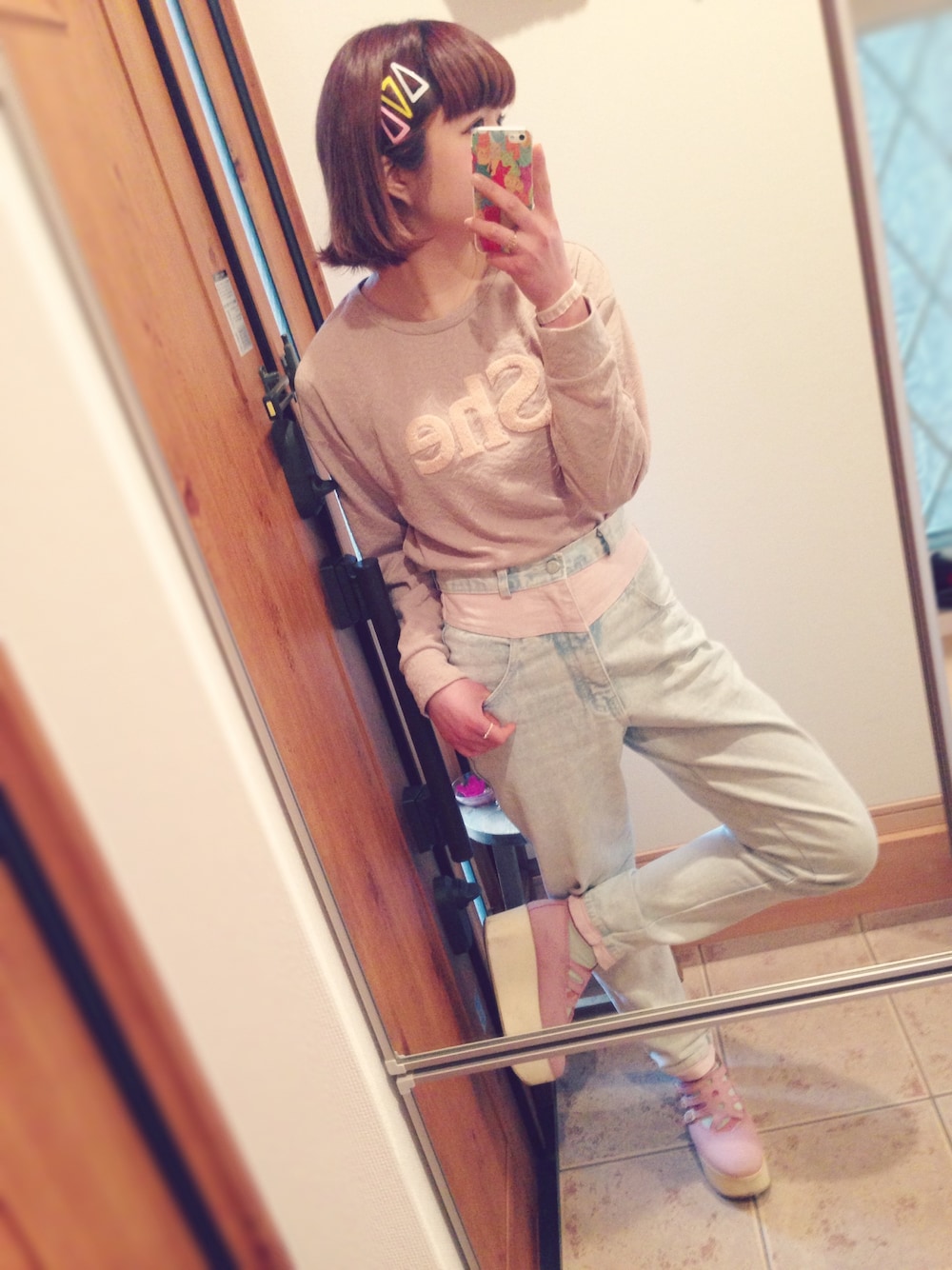 2月10日げつようび。 春休みやしバイトもなくて久々の 休日〜☃ なにしようかなって 言ってるあいだに1日終わって しまいそう。。。ほらもう夜〜! :トップス / Kastane ジャケット / used パンツ / used ベリーボタン / TOKYOBOPPER バッグ / fafa