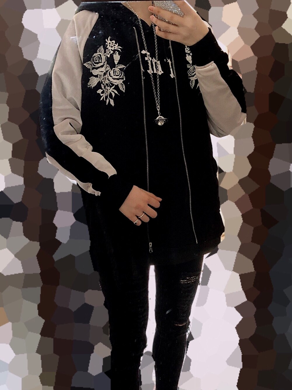 パシオスで一目惚れして買ったかスカジャン❤︎" 2000円でこのデザインは神すぎ( ´꒳` ) 中のパーカーはQoo10で買ったからブランド名は分かりません笑