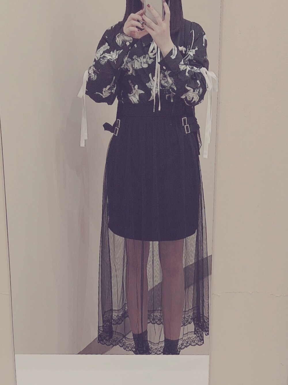 トラヴァストーキョーのシャツ買った! 天使がいっぱいいる柄˙˚ʚ⸜(* ॑ ॑* )⸝ɞ˚˙ ただの天使じゃなくて、銃とかナイフ持ってる所がまたよき🥰 シャツがごちゃごちゃしてるから全体的に黒でまとめました!