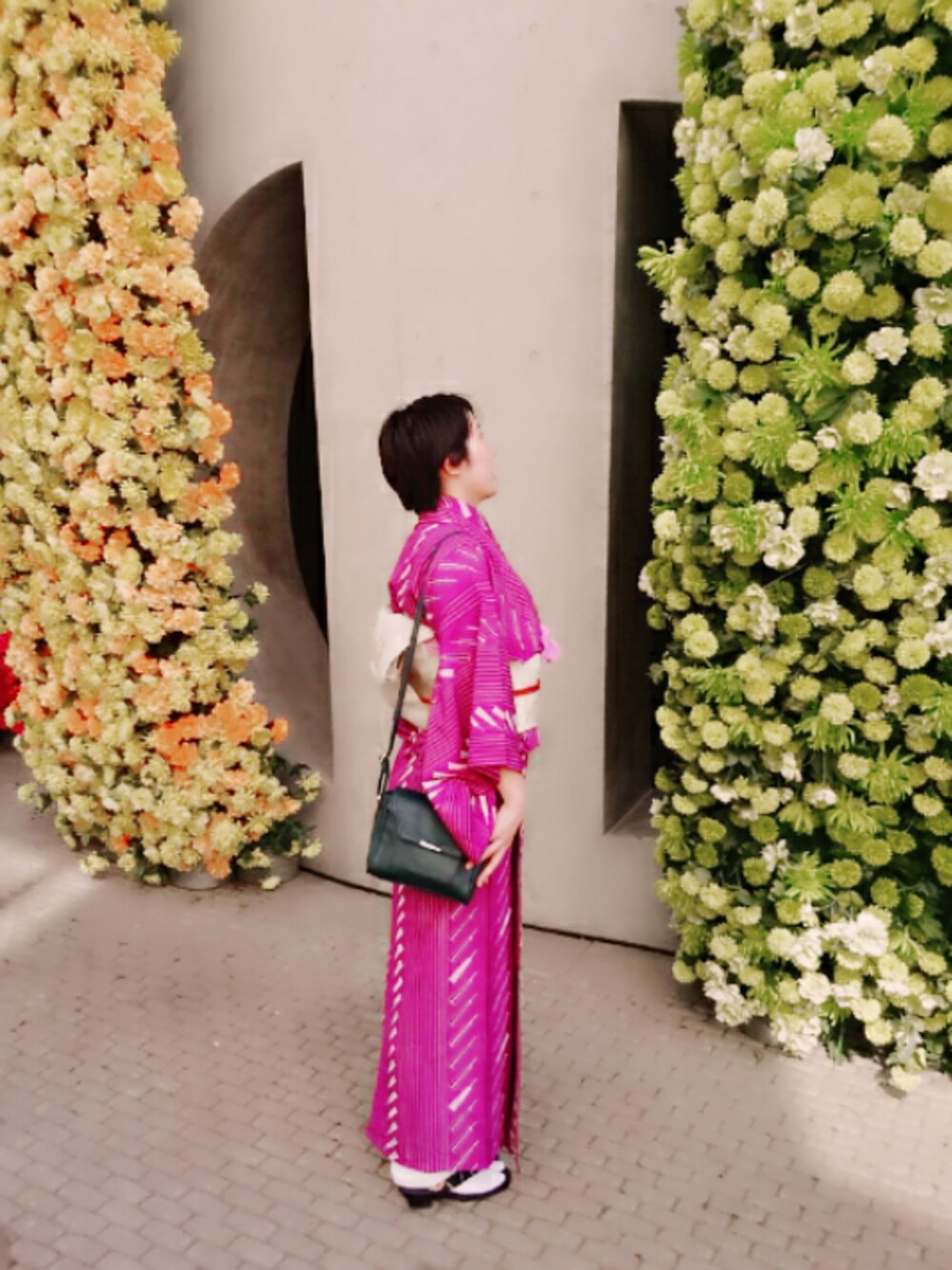 最近、普段着物生活を始めました☺ リゾナーレという地元の商業施設で着物でパシャリ☆ 紫の小紋に、ベージュの帯を、そしてオレンジの帯締めで色のアクセントになった…かな?