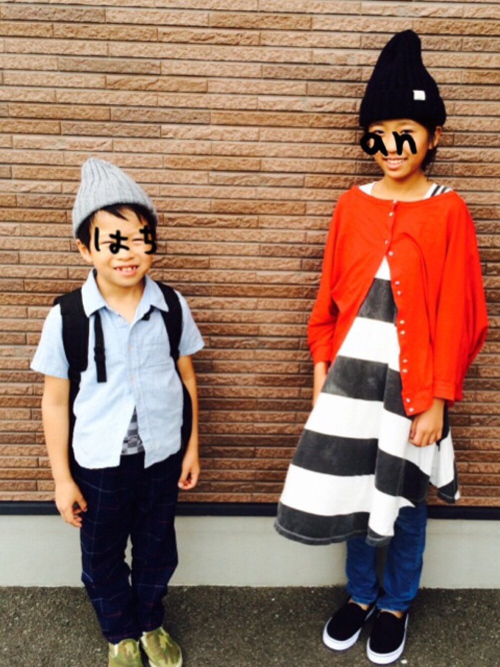 姉弟コーデ。 とくに何のテーマもなく、今からおばあちゃんのお見舞いへ♡ ニット帽をかぶるだけで少し秋っぽく…?