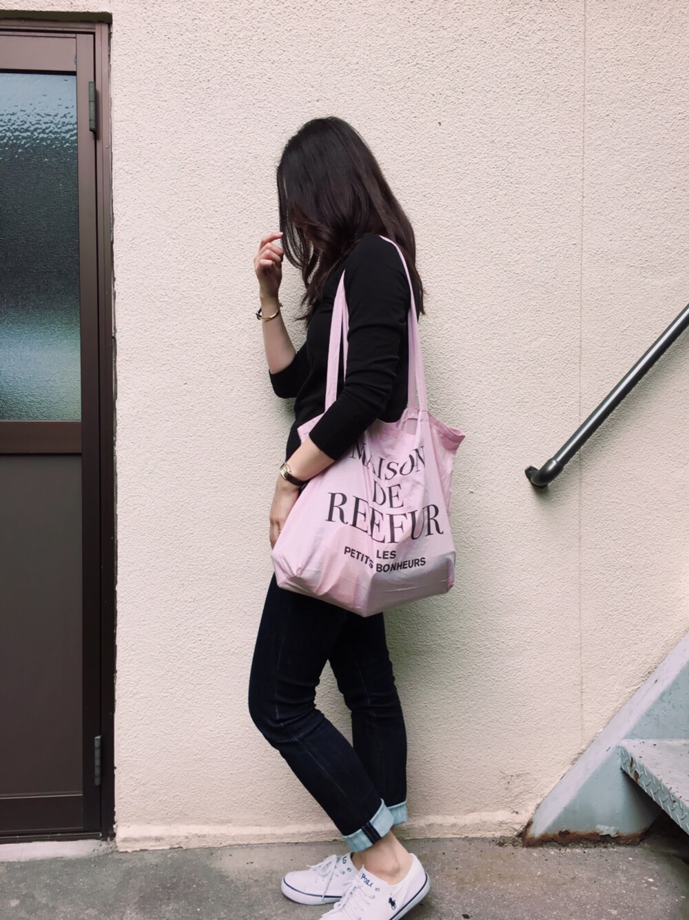 メゾンドリーファーのショッパー、可愛くてお気に入り☺️ 楽天で購入したこのスウェットのトップスは薄くて細身なので、スウェットでも綺麗目に着れます🌟(決して、楽天の回し者ではございませんw)