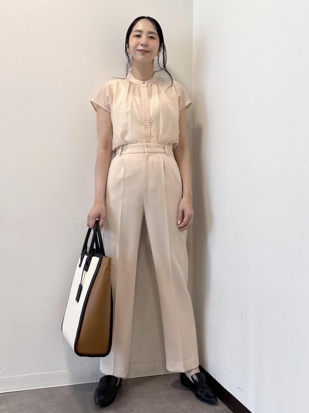 知的さの中に女性らしいピンクブラウス。 ピンクブラウスならキリッとしつつも甘さが程よく漂い柔らかなムードを演出。 今回はピンクブラウスをワントーンコーディネート。 甘さもありながらボトムはテーパードできりっとお仕事コーディネートにしてみました。 薄いピンクは優雅さが引き立って上品な印象。 柔らかく上品な印象を与える“ピンク”は、大人コーデにも馴染みやすく、華やかさと洗練を両立できるカラー。甘すぎず洗練された印象に仕上がりますよ。 ※店頭及び屋外での撮影画像は、光の当たり具合で 色味が異なって見える場合がございます。 商品の色味はスタジオ撮影の画像をご参照ください。 LINEでロペスタッフに相談は【友だち追加】をタップをして下さい <a href="https://lin.ee/fYH7uU0" style="background:url(https://scdn.line-apps.com/n/line_add_friends/btn/ja.png); background-size: contain; display: block;width: 116px;height: 36px; margin:.5em 0;"></a