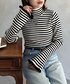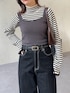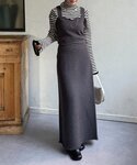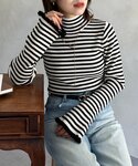 冬に着たくなるボーダーニット🤍 袖がフレアになっているので腕を細く長く見せてくれるシルエット◎ ラメ入りのビスチェと合わせてホリデーを意識したレイヤードコーデに✨