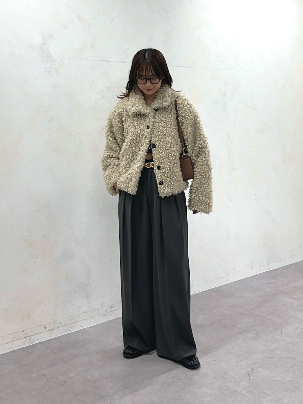 トレンドのプードルコートをスラックスと合わせて大人コーデに◎✨