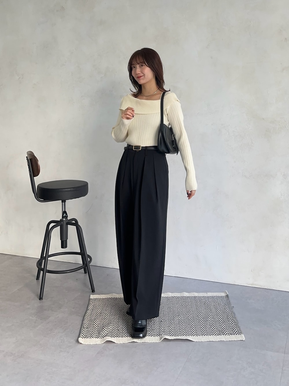 aimi(Thevon.)のニット/セーター「オフショル風スクエアリブニット」を使ったコーディネート