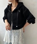 aimi(Thevon.)のパーカー「ダブルジップ裏毛ショートパーカー」を使ったコーディネート