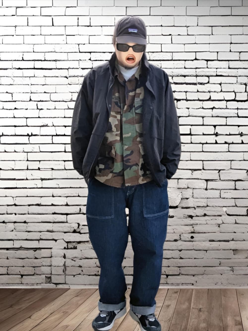 キャップ:Patagonia アウター:UNIQLO インナー:古着US ARMY BDU JACKET デニム:niko and... スニーカー:ニューバランス2002
