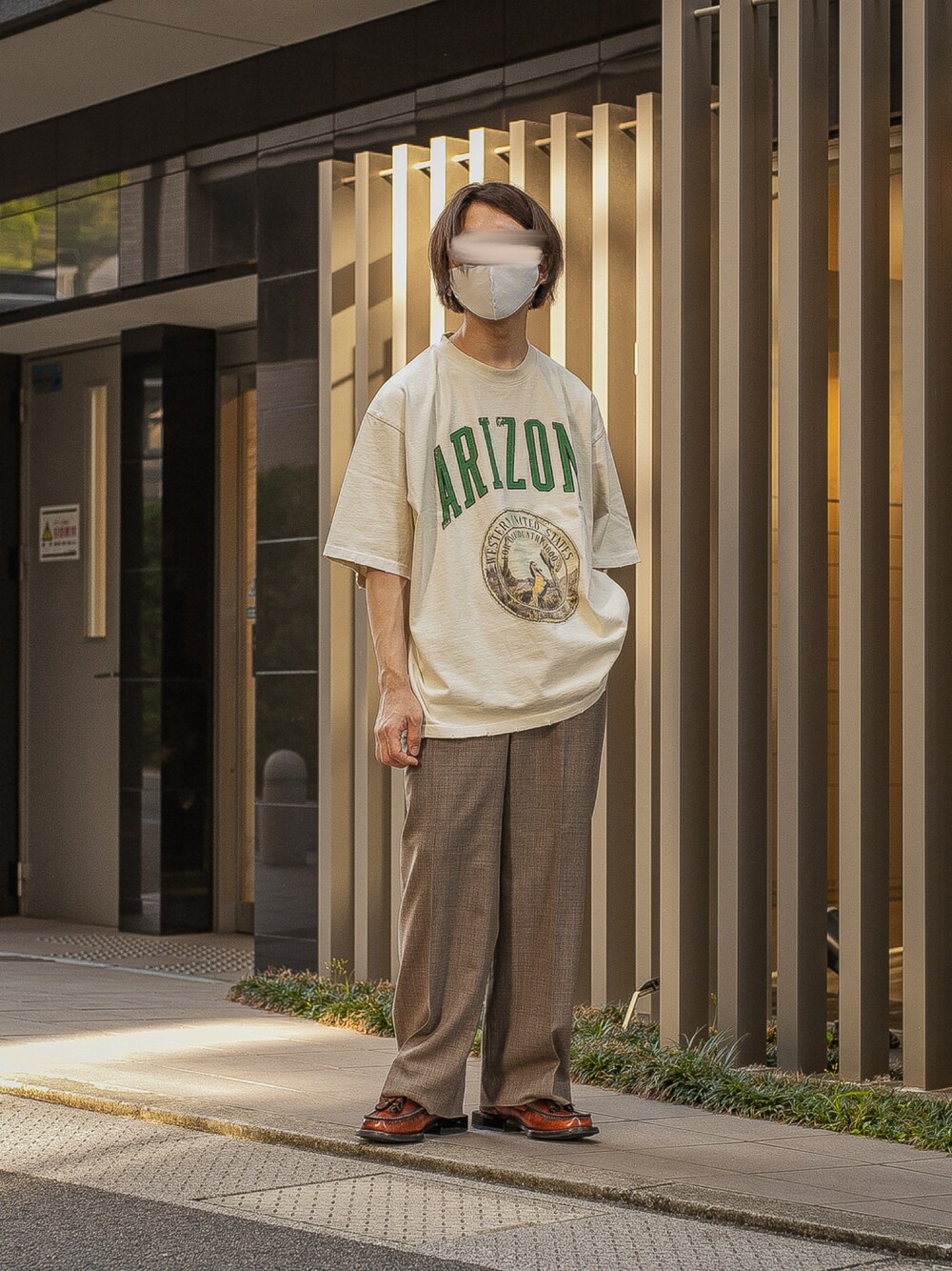 ビンテージ加工が施されたビックシルエットT🐯 夏活躍しそう✌️ ーーーーーーーーーーーーーーーーーーーーーー インスタでは165cm低身長男子のコーデを発信しています。 サイズ感なども詳しく配信しているので よかったらフォローお願いします◎ ▶︎▶︎@tench_165cm