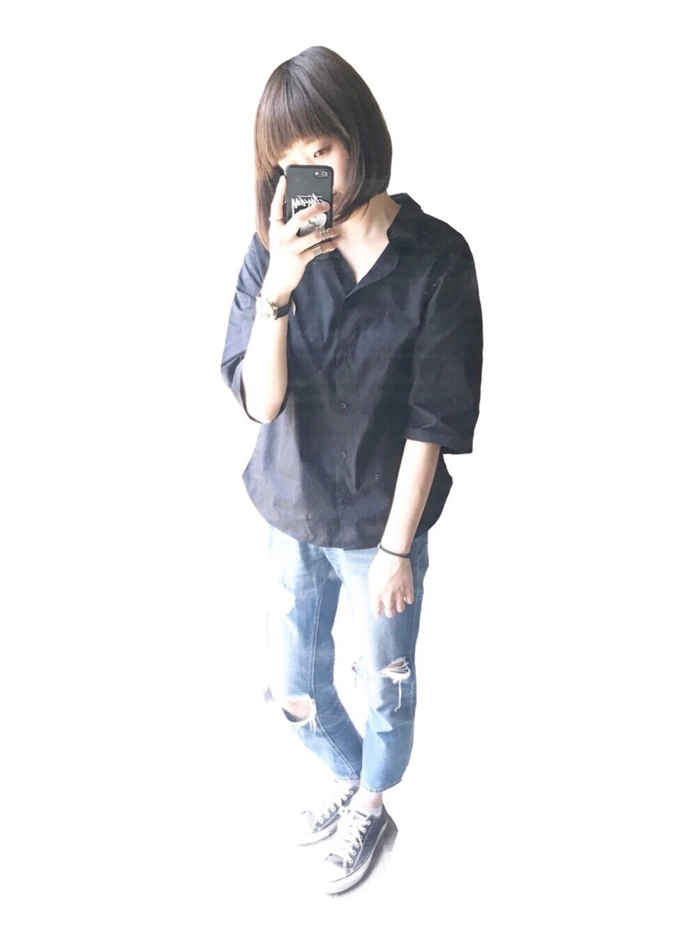 ✽・:..。o¢o。..:・✽・:..。o¢o。..:・✽・:..。o¢ 見て頂いてありがとうございます🌟 久しぶりの更新です😅 ✽・:..。o¢o。..:・✽・:..。o¢o。..:・✽・:..。o¢o 最近日中は暑くなってきましたね😅 なので今日は GUのオーバーサイズ半袖シャツと ダメージジーンズです👕👖 ダメージジーンズは昨年買ったものなんですけど、 ダメージ部分がさらにダメージ受けちゃって 広がってます😂😂😂 トップスは話題になった ヌキ襟シャツです💫 着心地もいいのでオススメです✌ ✽・:..。o¢o。..:・✽・:..。o¢o。..:・✽・:..。o¢o いつもいいね、save ありがとうございます😎🙌 コメント、フォローも 嬉しい限りです🙇🙇🙇 ✽・:..。o¢o。..:・✽・:..。o¢o。..:・✽・:..。o¢o 早い人はもうGWですね! 今年は9連休らしいです羨ましい😂 私も5連休とれたので また関西行ってきます‼️ 楽しみあるので頑張ります🔥 みなさんもよいGWを💫 ✽・:..。o¢o。..:・✽・:..。o¢o。..:・✽・:..。o¢o