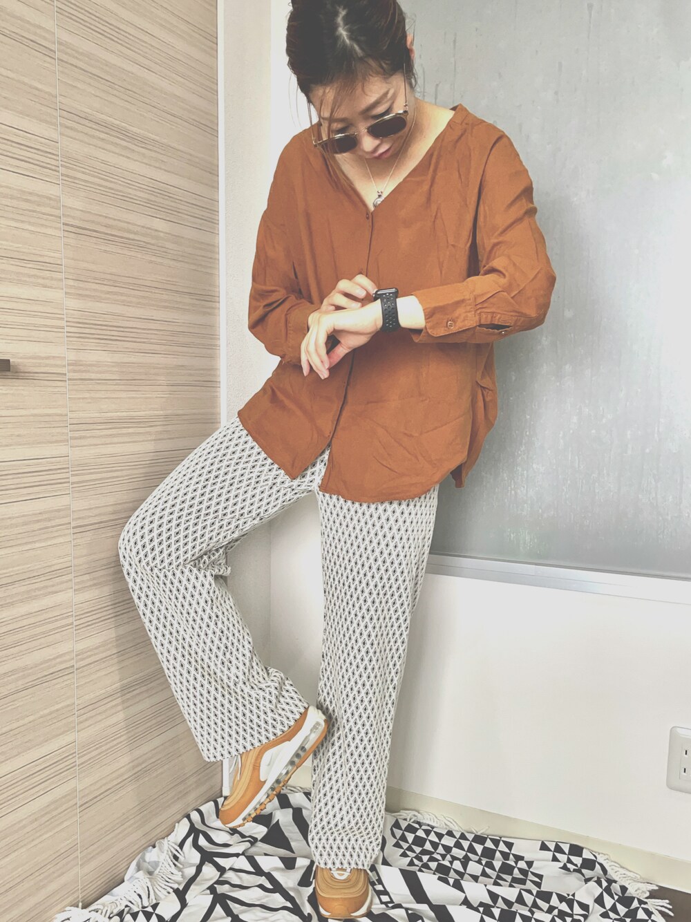 中秋の名月🌝🎑みたいですね 関西のお月さんはチャンスがあればみれるらしい、みたいな、と思うところも歳とったな。笑笑 ◆ happyな秋を。このシャツは菅田将暉風シャツだと勝手におもってます🏵 ◆ #いつでもスニーカー #秋色 #芋 #ブラウン好き #名月の夜に
