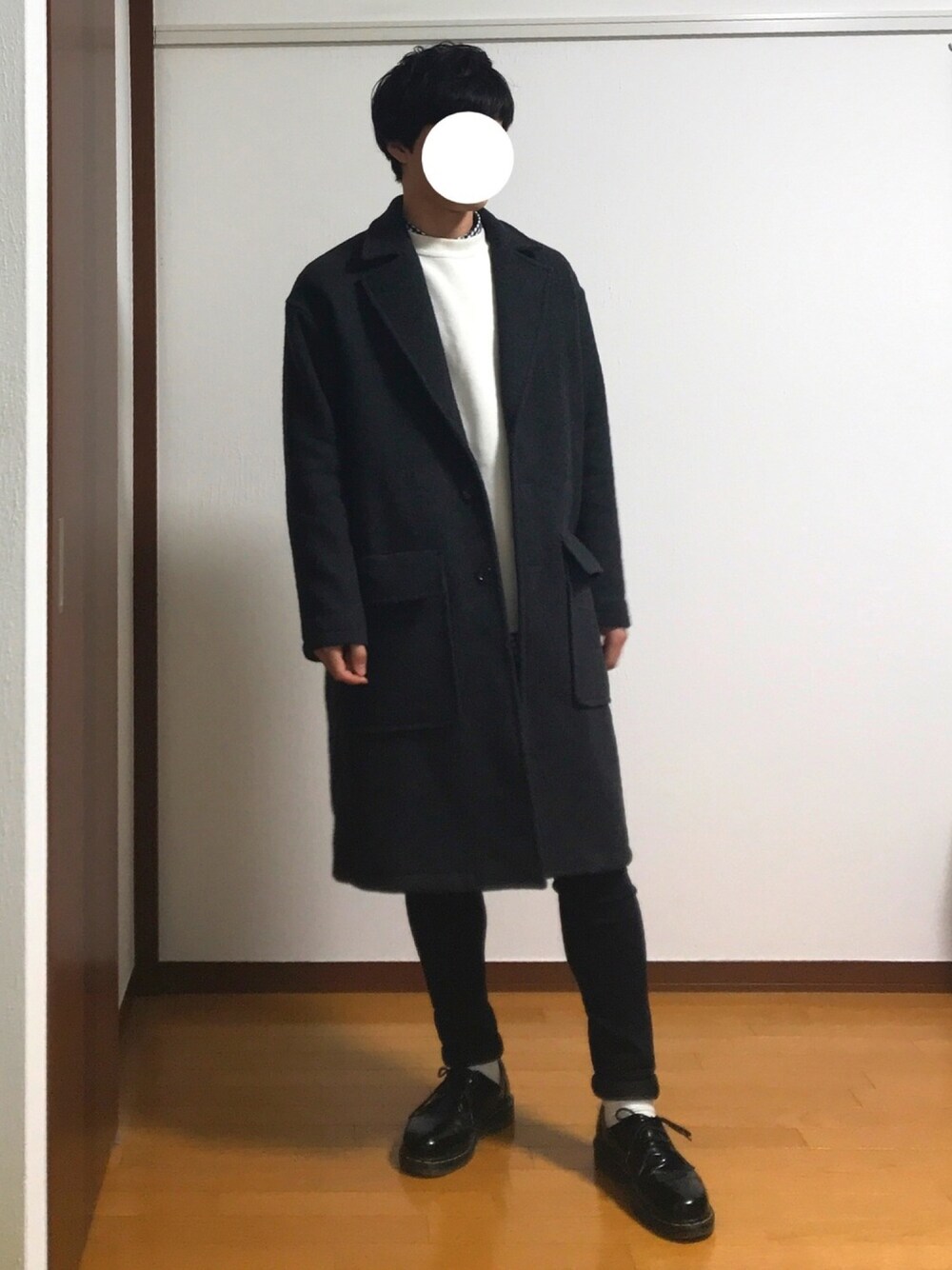 yskのチェスターコート「エアーメルトンオーバーコート」を使ったコーディネート
