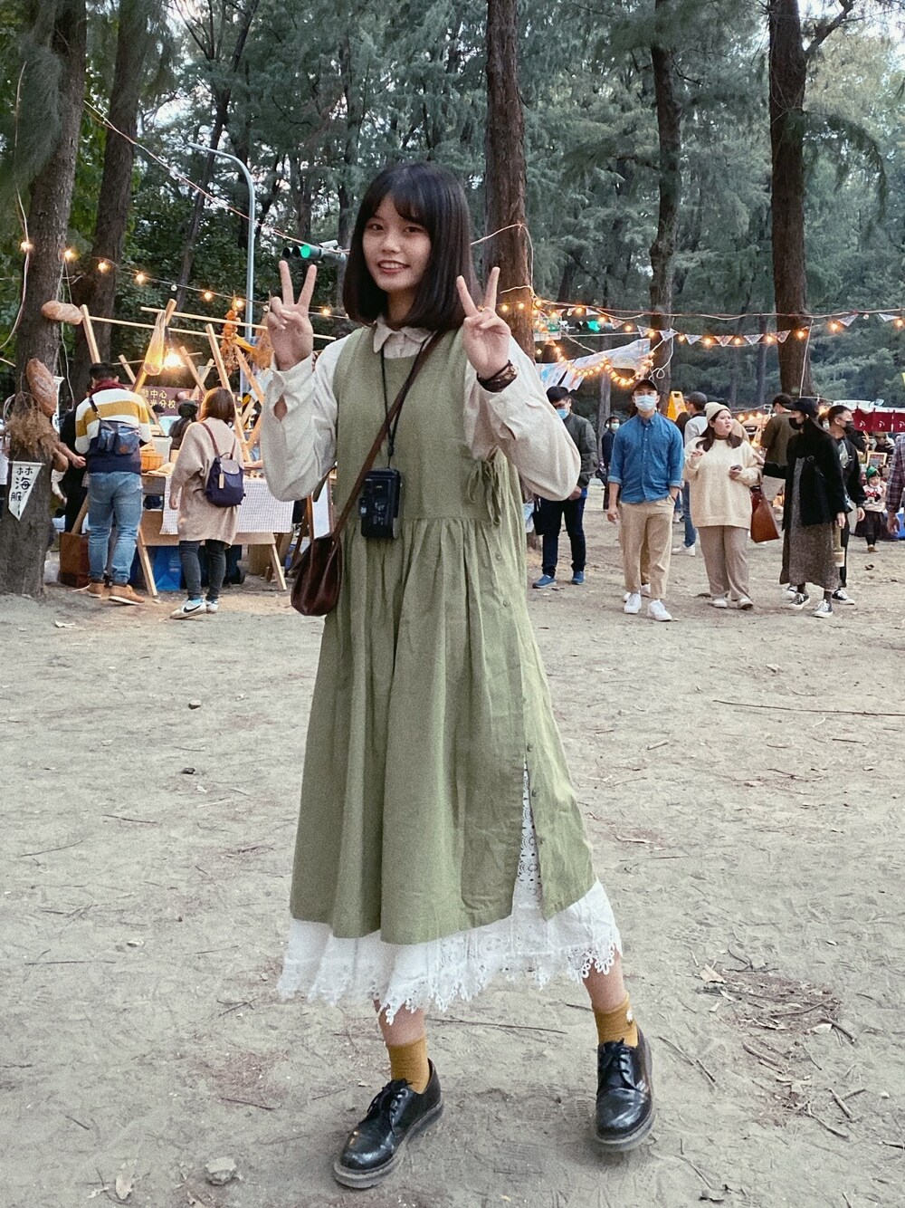 多層穿搭❄️ ①蕾絲背心長裙 ②淺色襯衫 ③綠色背心長裙 這件長裙很讚,有很多種穿搭的方式,側邊為扣子的樣式,可以依照當天的穿搭選擇打開或者全部扣上~極推!!!