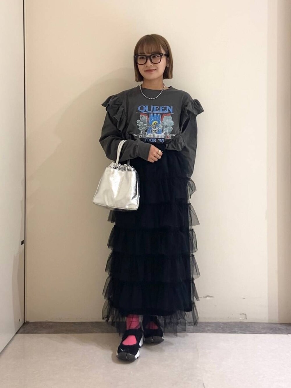Instagram: 🐕🦺 QUEEN🎸の可愛いトップス!!⚡️ チュールスカートとの相性抜群!シルバーアイテムや、カラーソックスで個性派コーデを組んでみました⛓ ライブやお出かけで着ていきたいコーデ👀✨