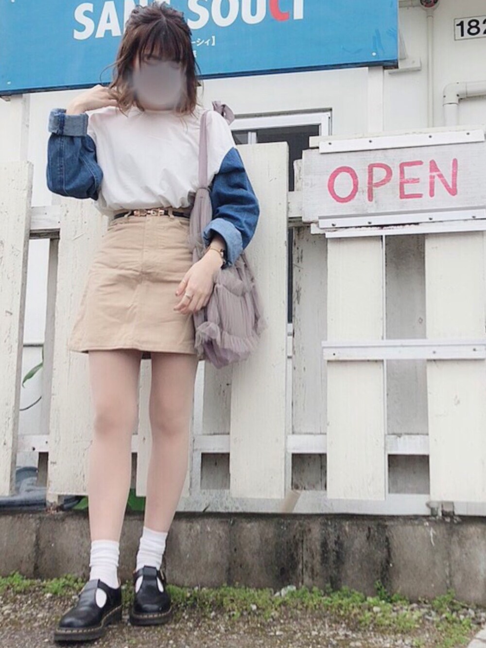 2-3年前のカスタネのブラウスだけど、デザイン好きすぎて良いです☺️ 看板のSANS SOUCIはカフェです!
