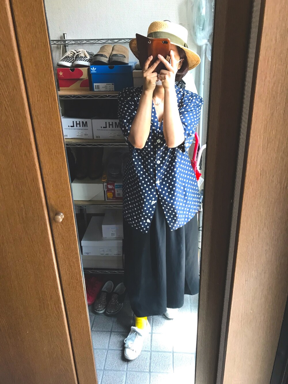 ネイビー×ブラック 久々に公園に散歩しに😎 暑いから麦わら帽子と日傘で 完全防備😆❤️ 緑はやっぱりリラックスできていい! 閲覧、いいね、お気に入り、フォローしていただいている方々、ありがとうごさいます😊💕