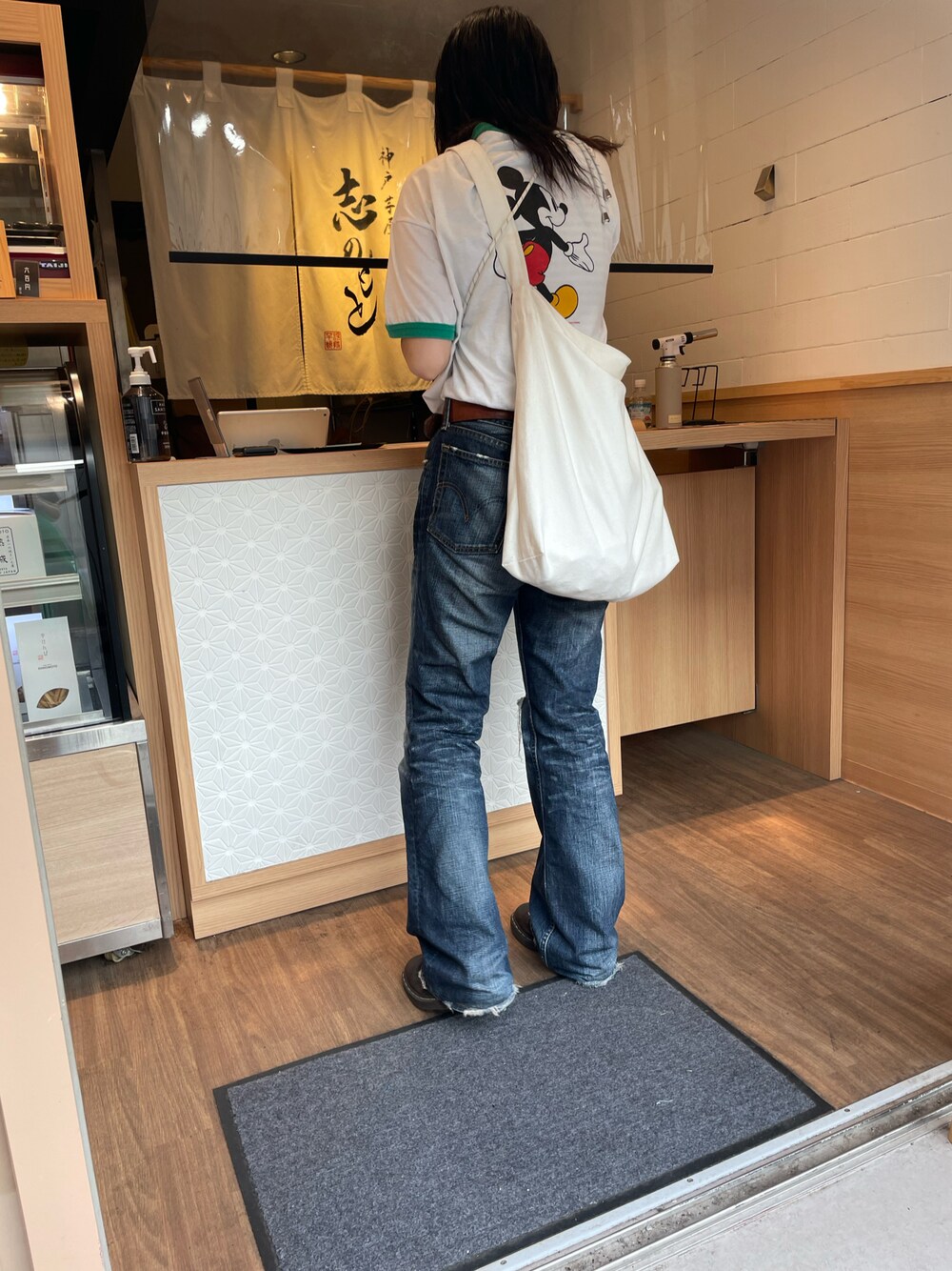 友達の古着コーデ パンツは180cmのお兄さんから落札したものらしい 片方の太もものところだけがダメージ入っててめっちゃ可愛かった)