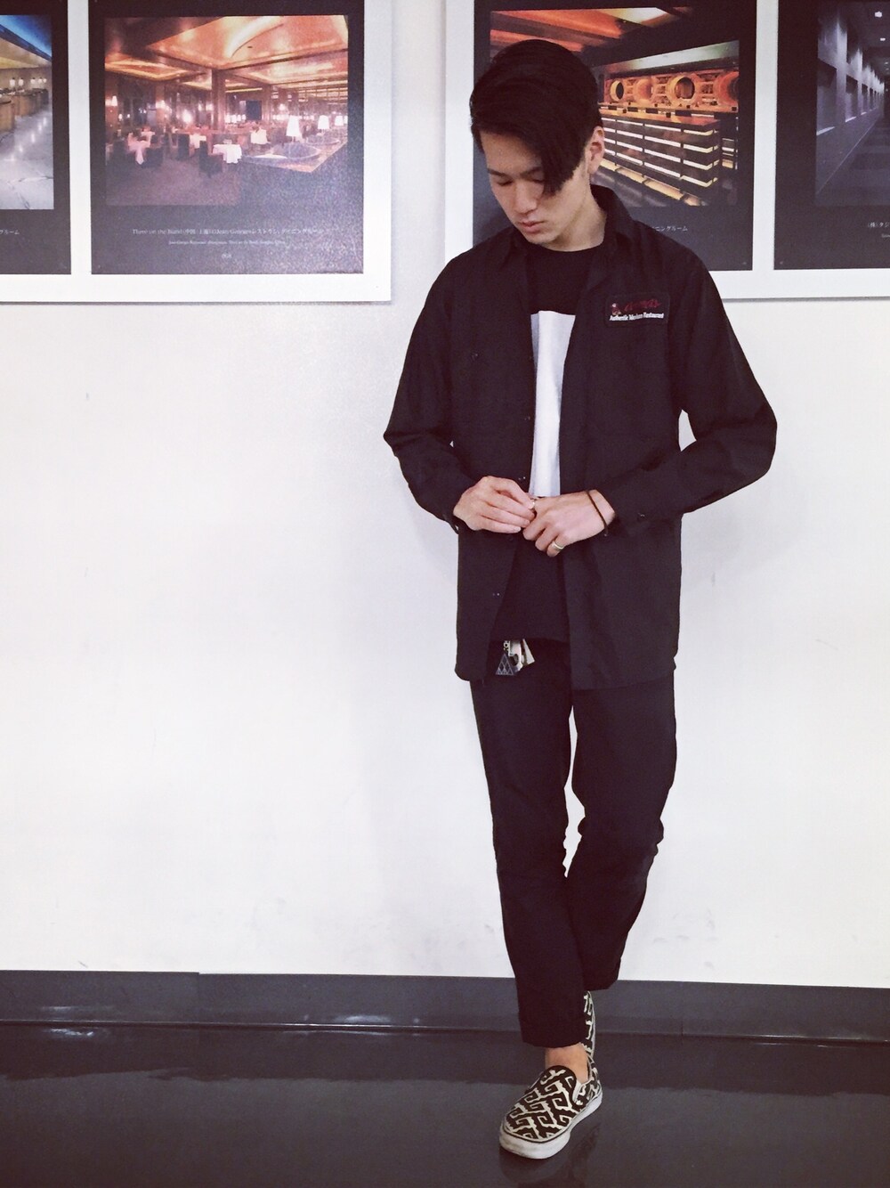 ちょっと男らしく、黒でまとめました。 髪の毛もセットしております。(笑) 黒のワークシャツを羽織って、 バイカラーのドルマンteeを着てます。 靴をヘビロテし過ぎてるので 新しい靴が欲しいなあと。