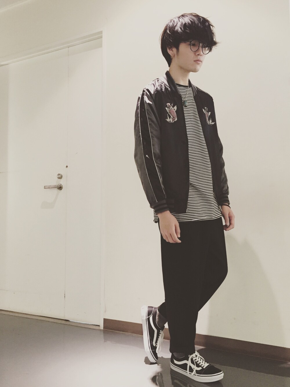お前またそのスカジャン着てるのかよ ってなりますが、お気に入りなので。 VANS OLD SKOOL買っちゃいました。 デカ履きで靴紐締めまくりです。 グレーの靴下も個人的にツボです。
