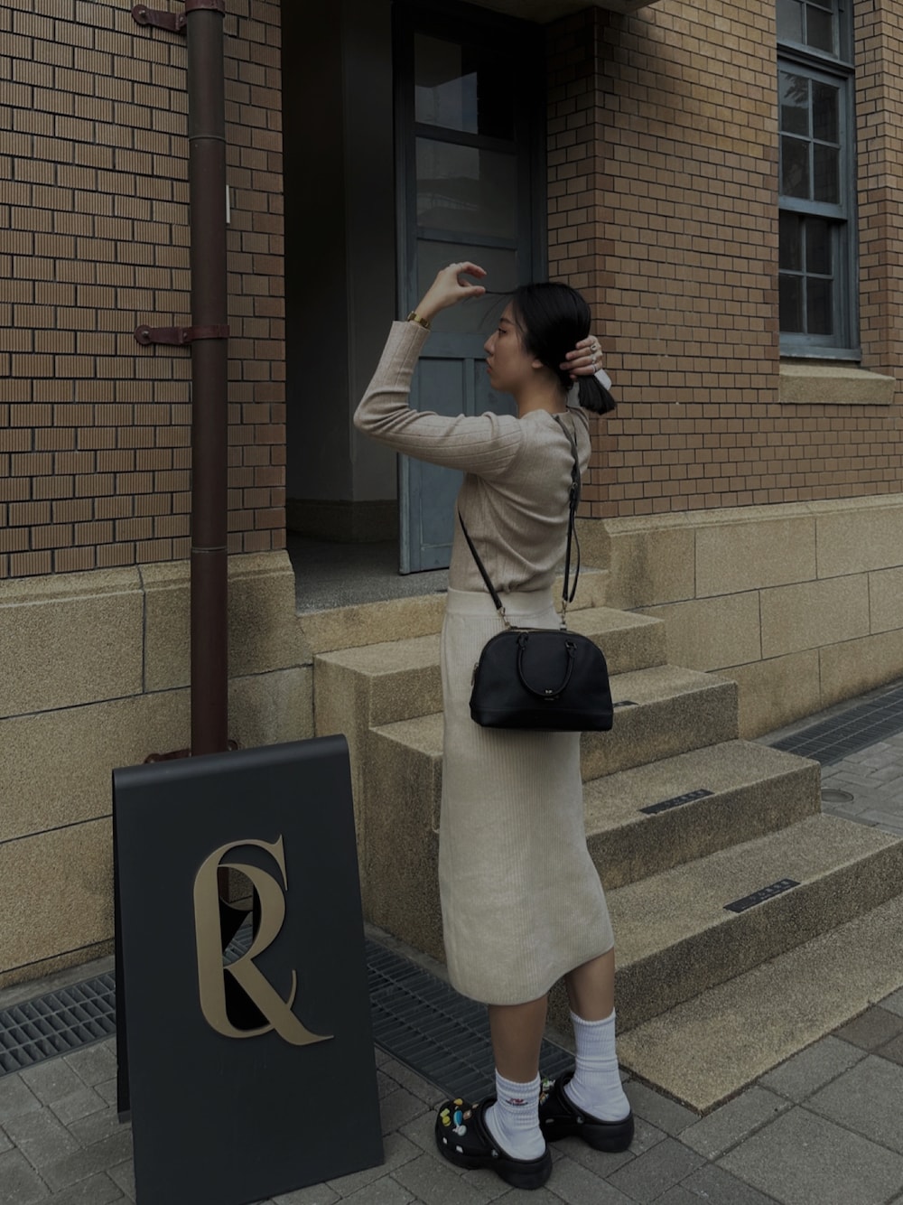 ベージュ系のサンダルを着用したレディースの冬コーディネートの2枚目の写真