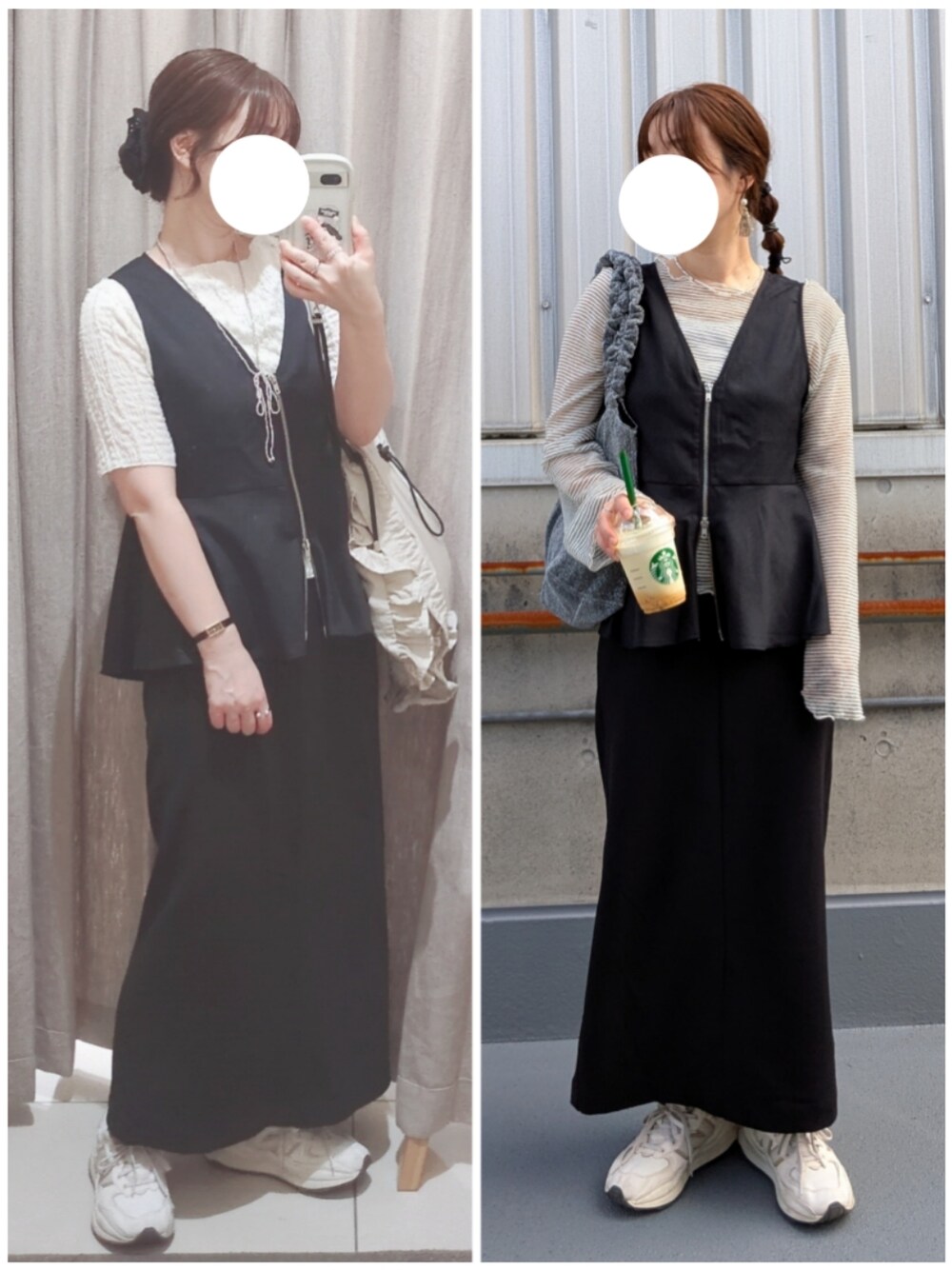 同じベストとスカートで、 半袖だった日と長袖だった日と。