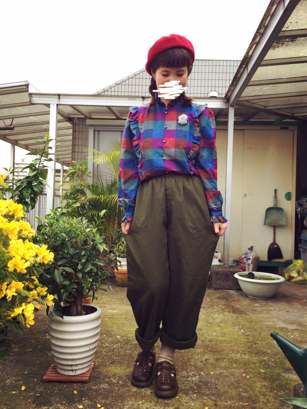 この前HUGで買ったパンツ *. 普段スカートとかワンピース ばかりなのだけど,久々に パンツで可愛いと思った子 見つけてしまった(´〇`*)♡ シャツはKINJIです!! こぉいう柄好き ⚫︎´ `⚫︎ ホコリブローチにハサミピアス。