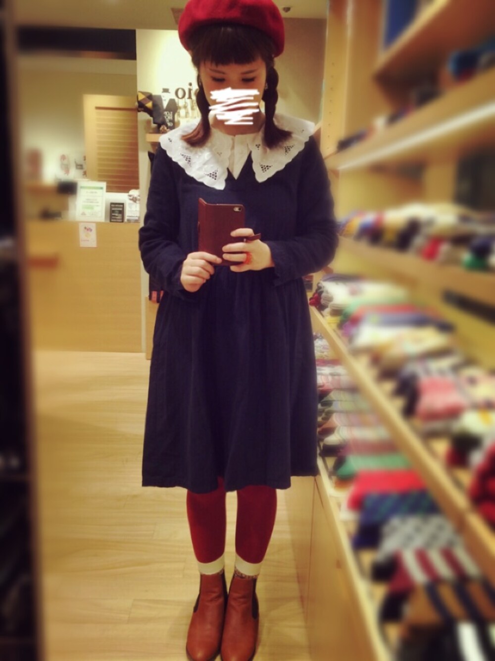 すごくお久しぶりです ** 毎日好きな洋服を着てたけど 写真撮る暇がなくて放置でした。 今日はクリスマスですな ♪♪ 私は24日も25日も仕事。。 別に大人だからいいけどね。( 白目 ) 20%くらいクリスマス 意識した格好した ∩´ `∩♩ 赤のベレー帽に赤のタイツ。 この後段ボールに引っかかって 穴が空いたのは内緒(´・ω・`)
